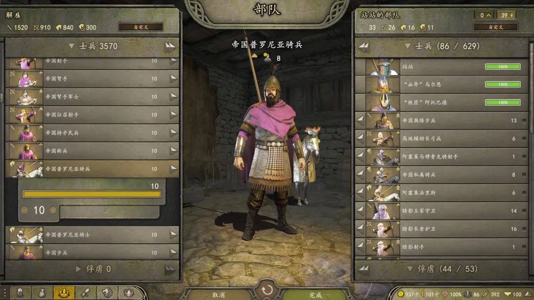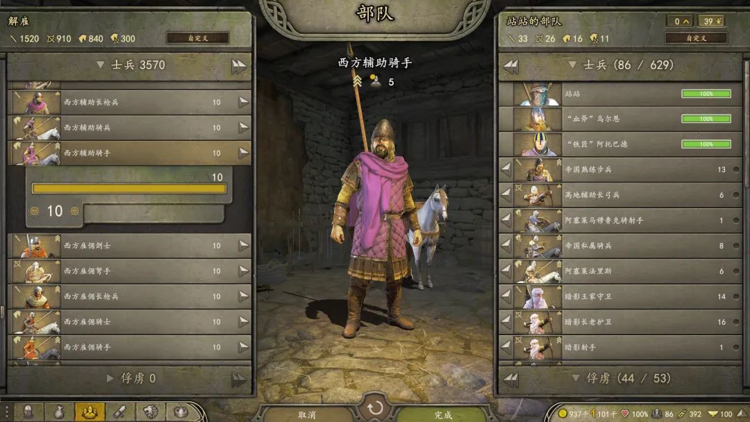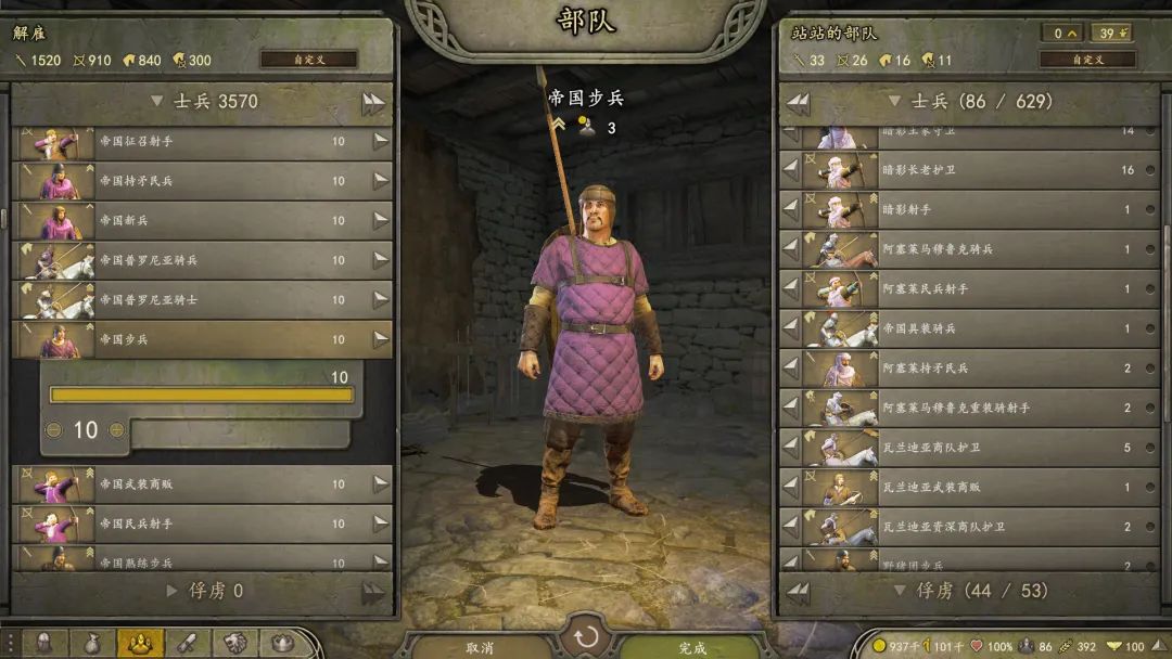 特點:開局無法大量招募,但當帝國陣營征服異族文化的定居點後,輔兵會作爲戰兵數量減少的補償而加入招募列表,爲玩家提供額外的兵力支持。
