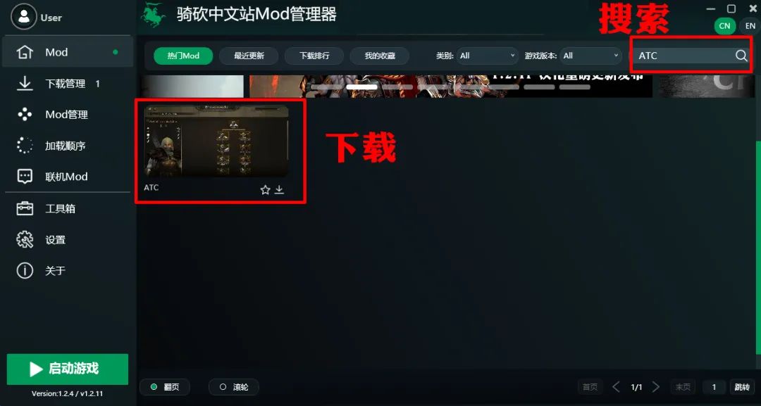 2、在右上角的搜索框中搜索“lipotty的真實軍隊大修”、“MOD四前置”、“ATC-阿多奈的部隊轉換器”MOD並點擊下載