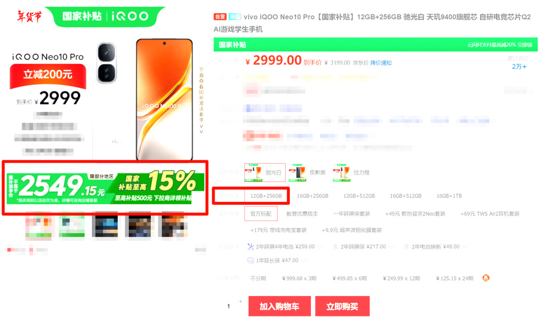 另一邊,最便宜的天璣9400旗艦機,是iQOO Neo 10 Pro,國補後同樣最低價到了2549,目前補貼價可以輕易買到。