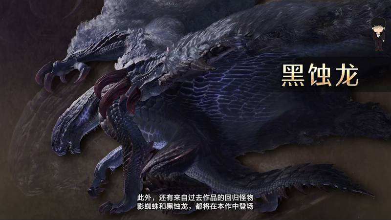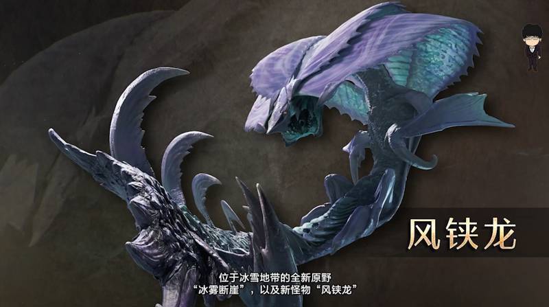 接着是正式版方面的最新消息。全新地圖“冰霧斷崖”正式公佈,該區域對應怪物“風鋏龍”“影蜘蛛”和“黑蝕龍”也正式亮相。這與早前網上公佈的解包怪物圖保持一致。此次新宣傳片中,鎖刃龍最後出現了類“狂龍症”的特效表現,(也有可能是鎖刃龍特殊技)與黑蝕龍的迴歸呼應,那或許意味着未來正式版中非古龍怪物都會沾染
