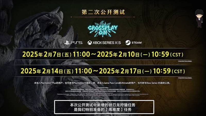 首先是此次公開測試的基本內容。測試時間依舊沒變,第二次公開測試將於2025年2月7日(週五)北京時間上午11:00正式開始,分爲兩個階段,分別是2月7日(週五)11:00至2月10日(週一)10:59,以及2月14日(週五)11:00至2月17日(週一)10:59