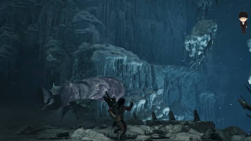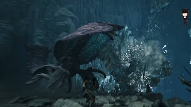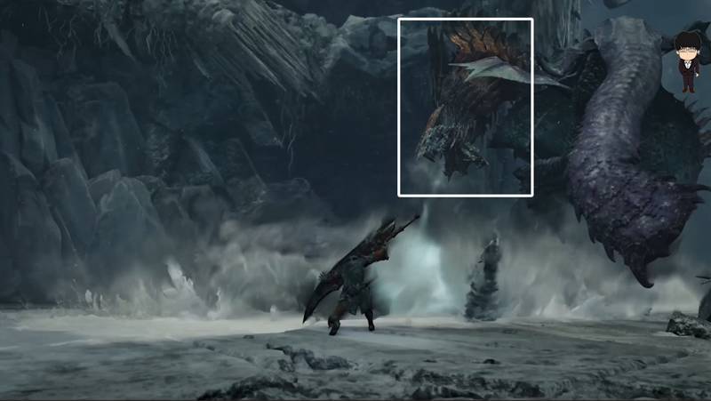新場景互動道具,可提前抓鉤固定,等待時機撞擊目標。另外還有一隻新怪物出現,目前暫不知情況,從怪物造型和解包圖上判斷,大概是未公開的“冰系海龍種”