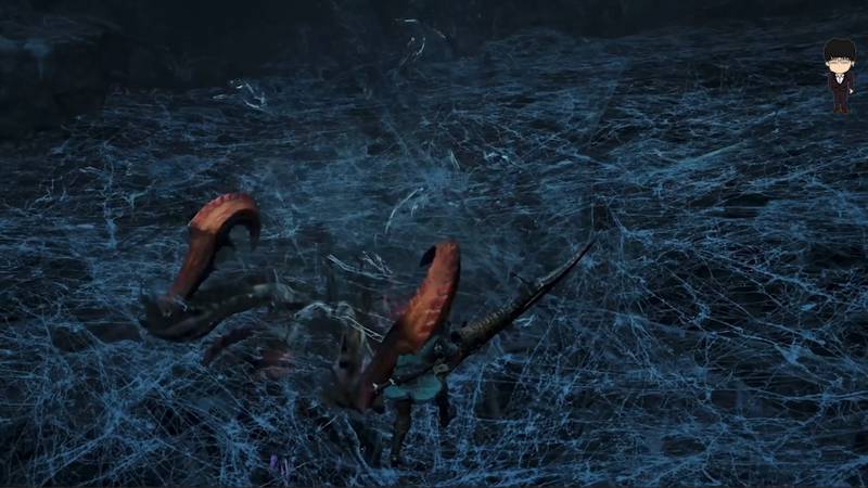 實機碎片鏡頭中可以發現,風鋏龍的遠程攻擊可快速冰凍目標,保持空中戰鬥或將成爲常態,閃光彈必不可少。影蜘蛛的蛛網覆蓋點保留了《世界》的上下層地圖玩法,目測貌似只有怪物具備上下攀爬