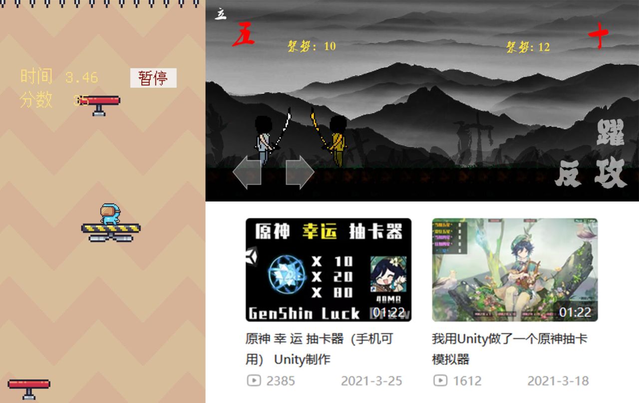 这之后,做了一些非常简陋的小游戏,有电脑端的,也有手机端的。