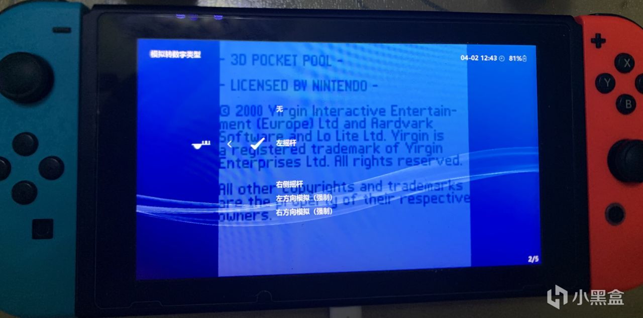 如果你发现摇杆无法使用,那么你需要重按两个遥感弹出菜单,选择控制-端口一控制-选择模拟转数字类型-左摇杆