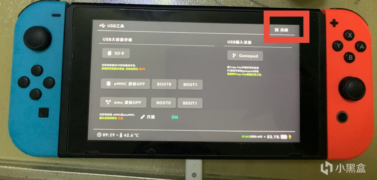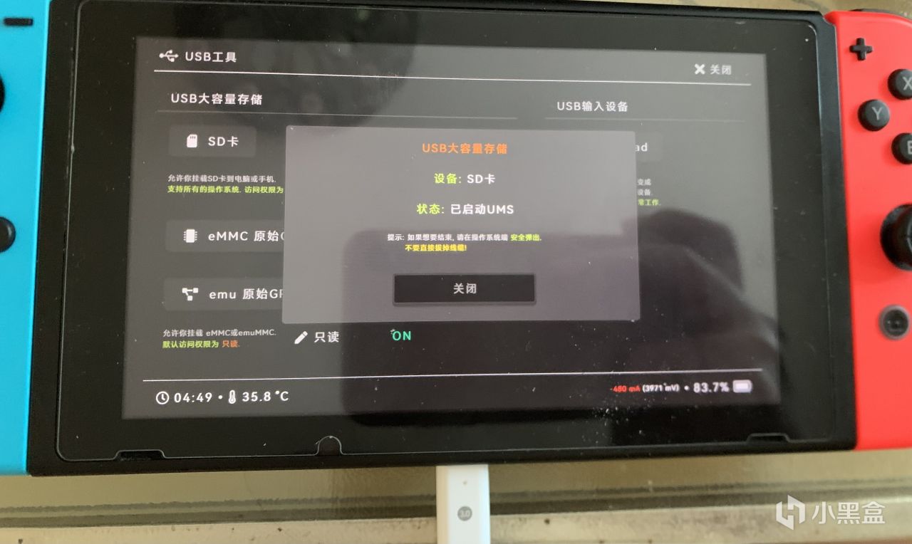 接下来点击Windows的“安全弹出硬盘”(尽量选择安全弹出,否则有可能丢失数据),此时Switch会自动切换到如下界面,接下来点击右上角的关闭即可