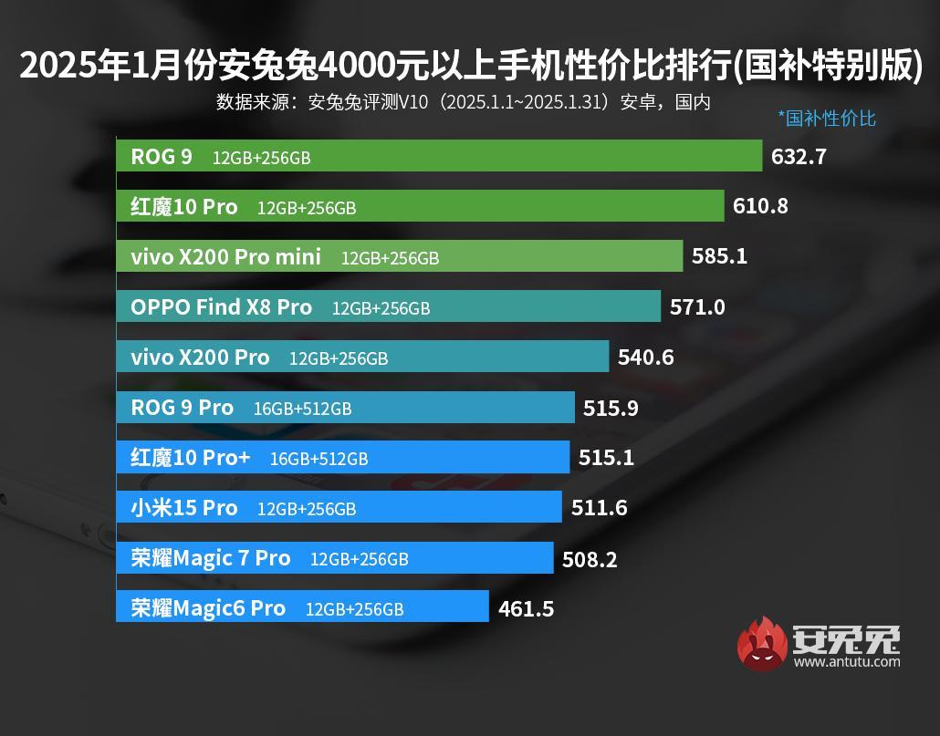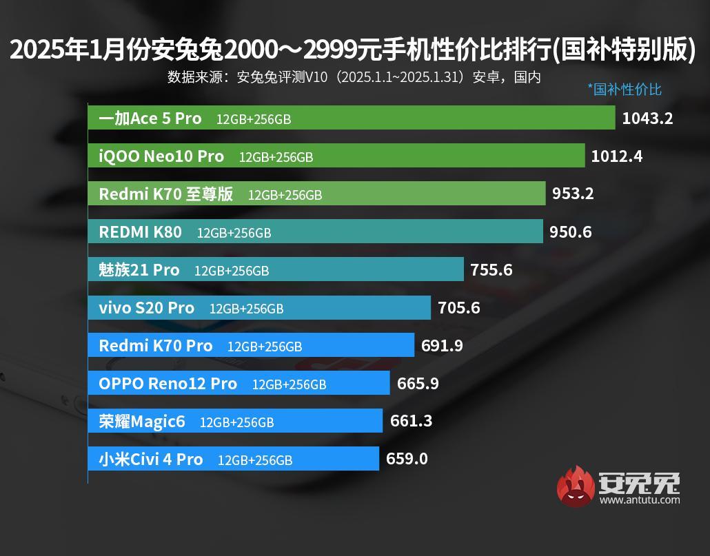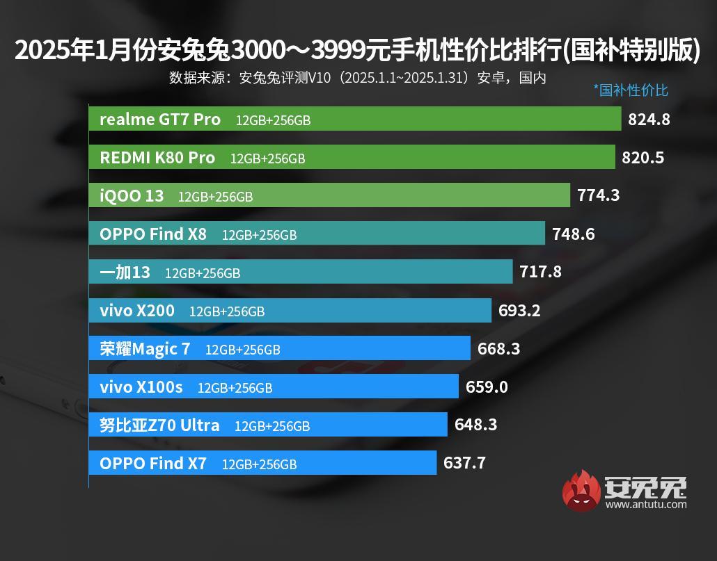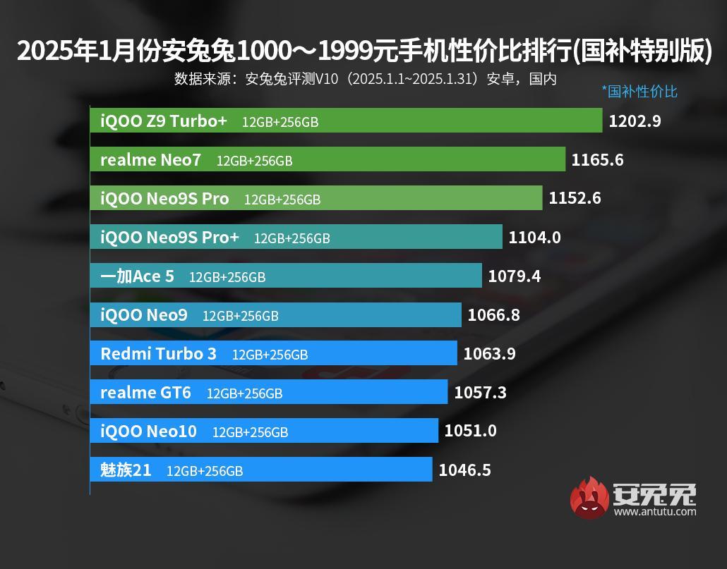 这里是给大家按价位节选的1月性价比榜单(国补特别版)的内容,有兴趣的朋友可以搜索安兔兔官网查看完整榜单。