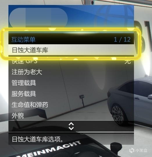 2.在車庫中按M打開互動菜單