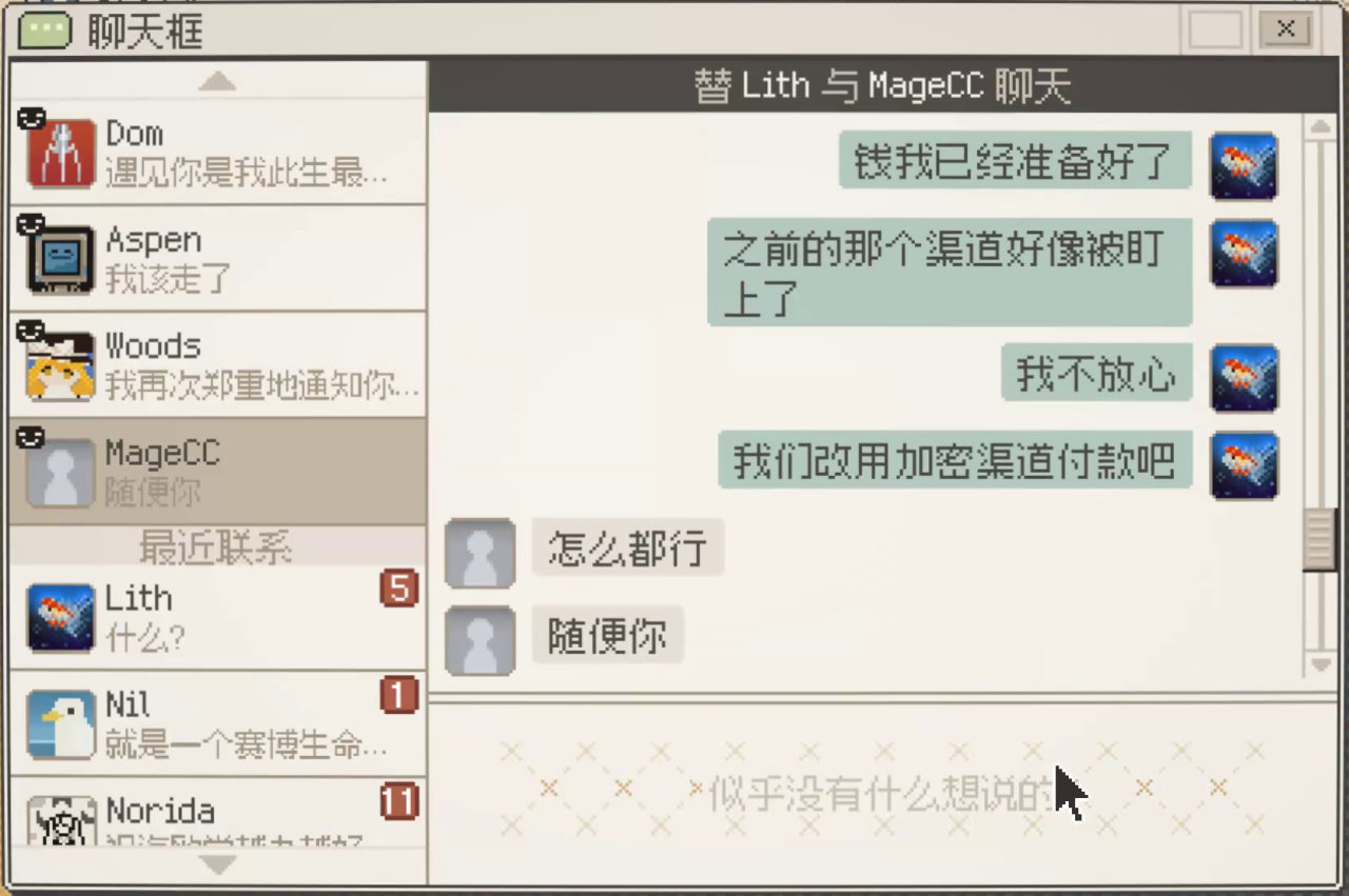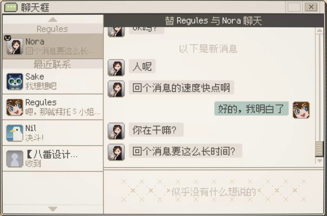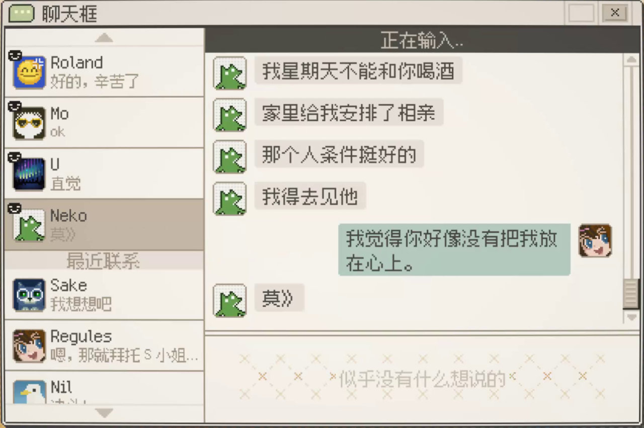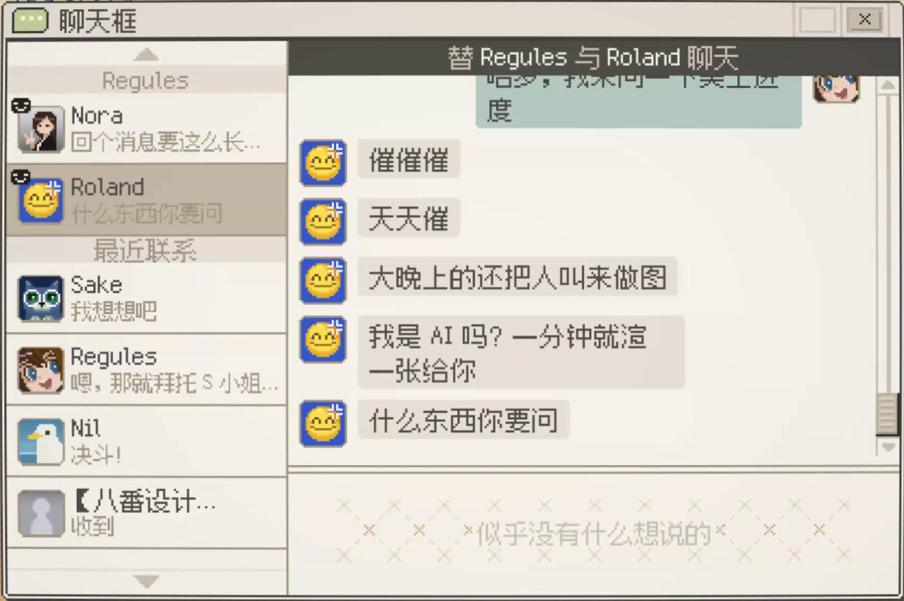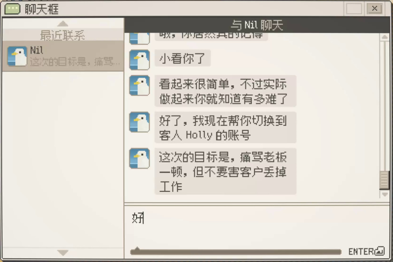 危機公關時刻的羣聊將開啓“全體禁言”,個性十足的嘴臭Npc在談判失敗時會刪除好友並附贈拉黑一條龍。相比之下,我們的主角似乎“入機”味更足。