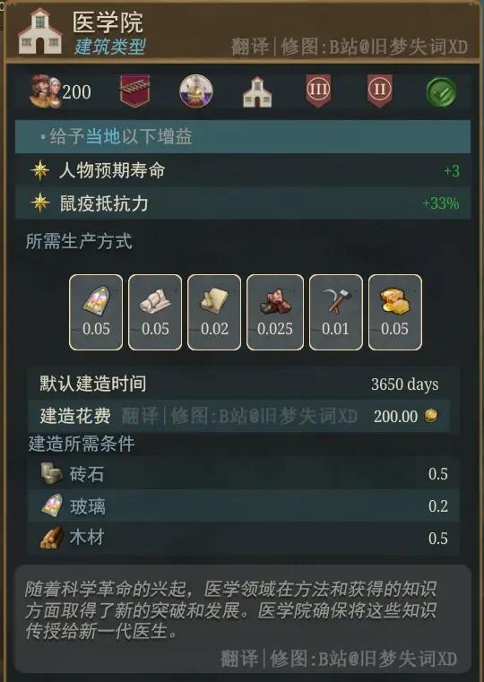 在科学革命之后,玩家就能研究医学院这一进步,并在你的城镇或城市建造这个建筑。
