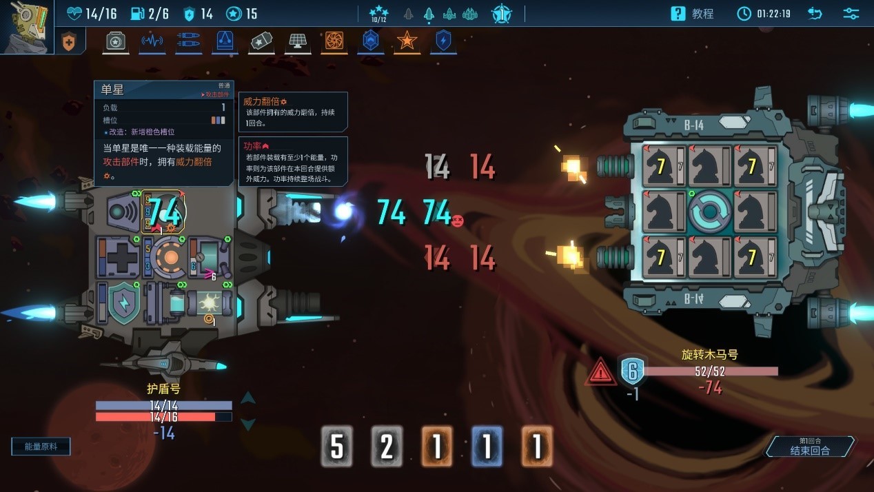 玩家抽到的牌是有數字的能量牌,真正起作用的是船上的部件。
