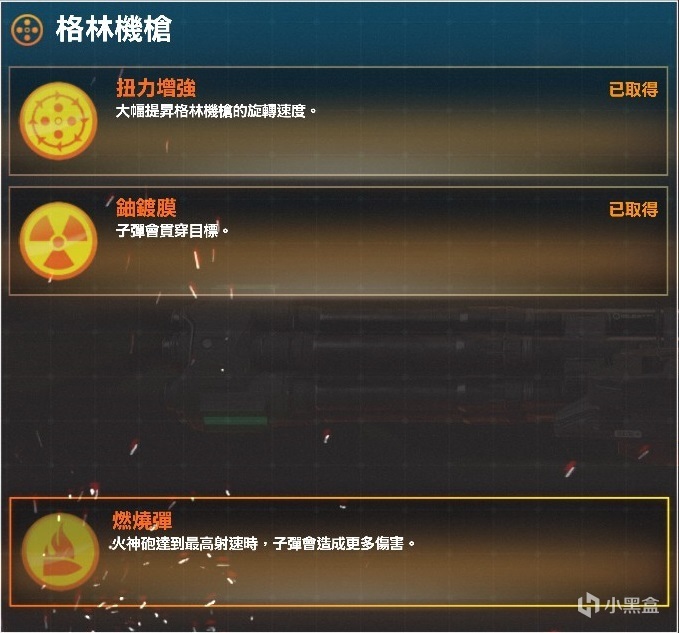 扭力增強;讓機槍更快達到最高射速,點了就不用等那麼久啓動了,個人建議優先點。