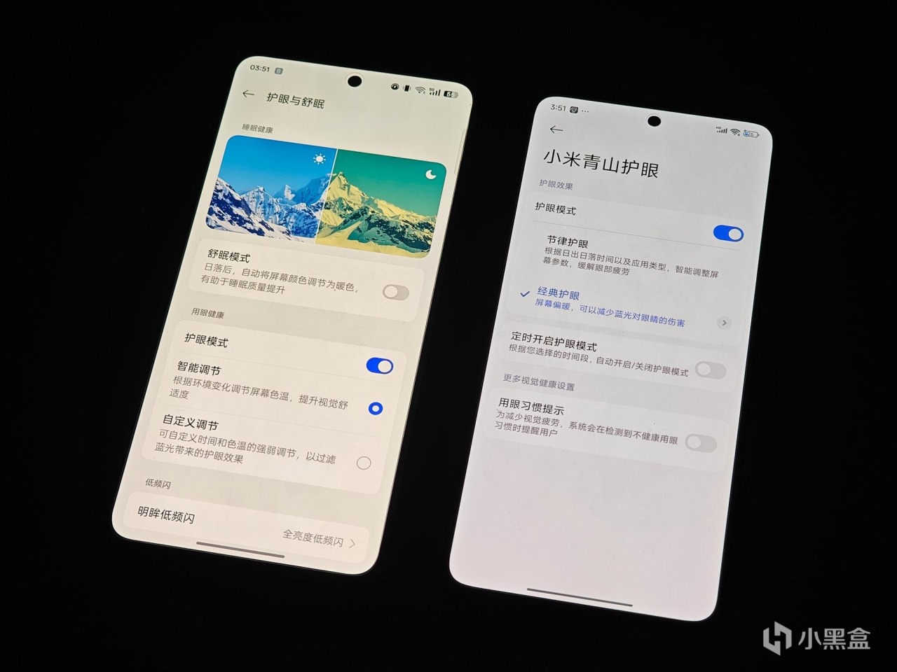 护眼方面,一加Ace 5 Pro搭载一加13同款的太阳显示以及明眸护眼2.0技术,支持全亮度类DC调光,屏幕具有莱茵TUV智能护眼4.0认证。红米K80 Pro搭载无频闪自然光的小米青山护眼2.0技术,也支持全亮度DC调光,具有三重TUV智能护眼认证,两款手机无论在强光下还是暗光下护眼效果都不错,开启护眼模式后,一加Ace 5 Pro屏幕更暖一点,红米K80 Pro则偏冷一点。
