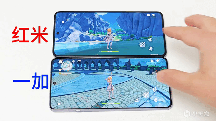 我们把两款手机的自动亮度关闭,全部采用100%的亮度,然后色彩模式都调成生动,左边为红米K80 Pro,右边为一加Ace 5 Pro,虽然一加的分辨率略低一点,但感觉色彩表现更讨好眼球一点,红米的画面略暗色彩略深。