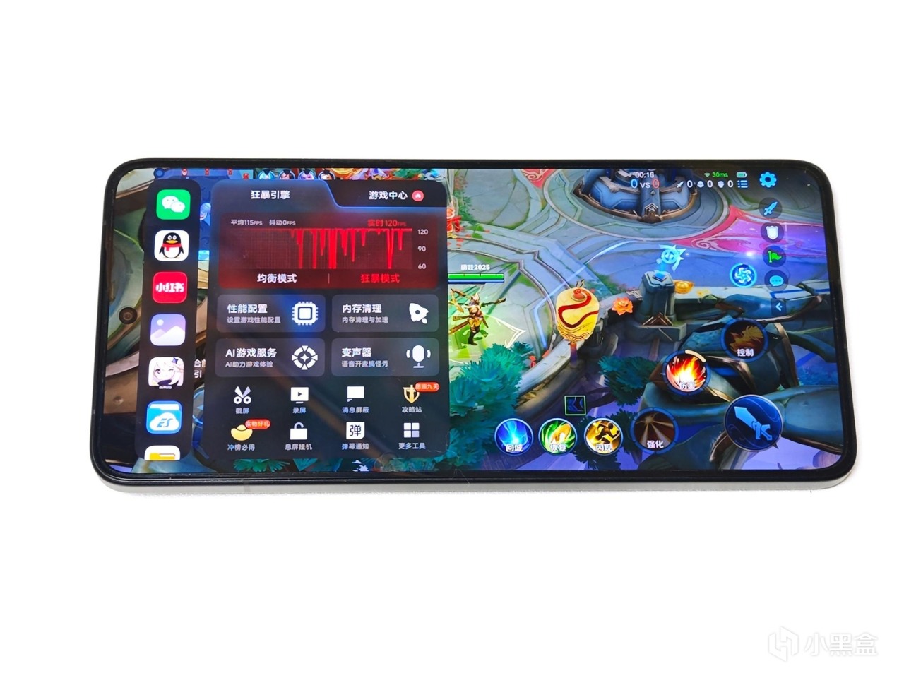 红米K80 Pro的实际帧率我们可以通过右滑呼出狂暴引擎界面看到,平均115FPS。