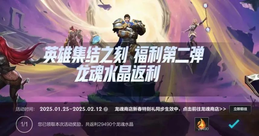 截止至2月12日,召唤师可前往游戏内查看并领取本次活动可返利的龙魂水晶。
