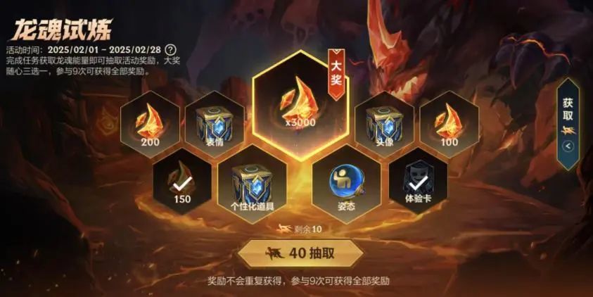 龙魂试炼阶段一结束倒计时最后1天!截止至2月28日,召唤师完成对应阶段任务,即可实现暗影 易、龙魂水晶*3000和专属大奖随心三选一!