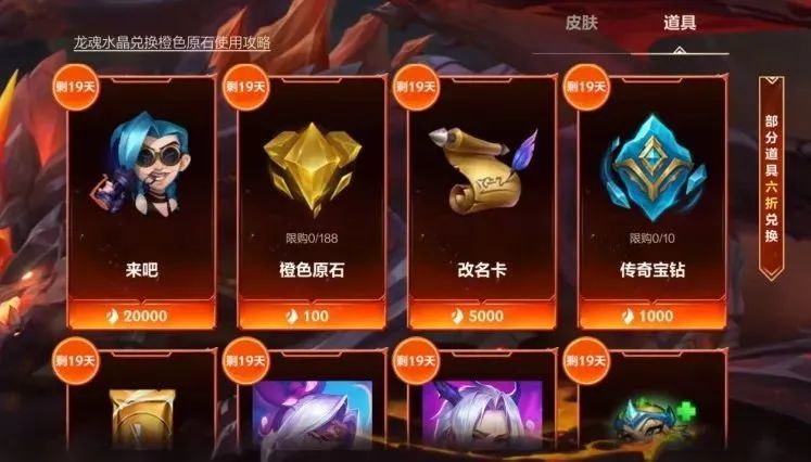 龙魂商店限时上架【橙色原石*188】道具,本月的橙色原石*50道具也已上架,有需要的召唤师记得及时兑换~