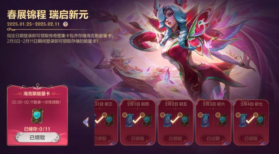 截止至2月11日,召唤师登录即可领取此前已存储的海克斯能量卡~