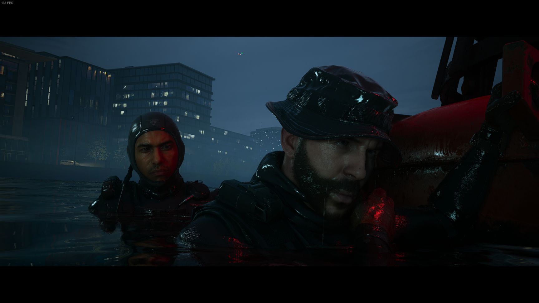 幽蓝的环境色调和地面雨水反射都相当带感,真正让人有声临其境的感觉,我好像被吹到了夹杂着雨水冷风,在地面湿滑的铁板上枪战,这一关才有COD该有的水准,但很可惜原创性不高,在老现代战争里已经整过了。