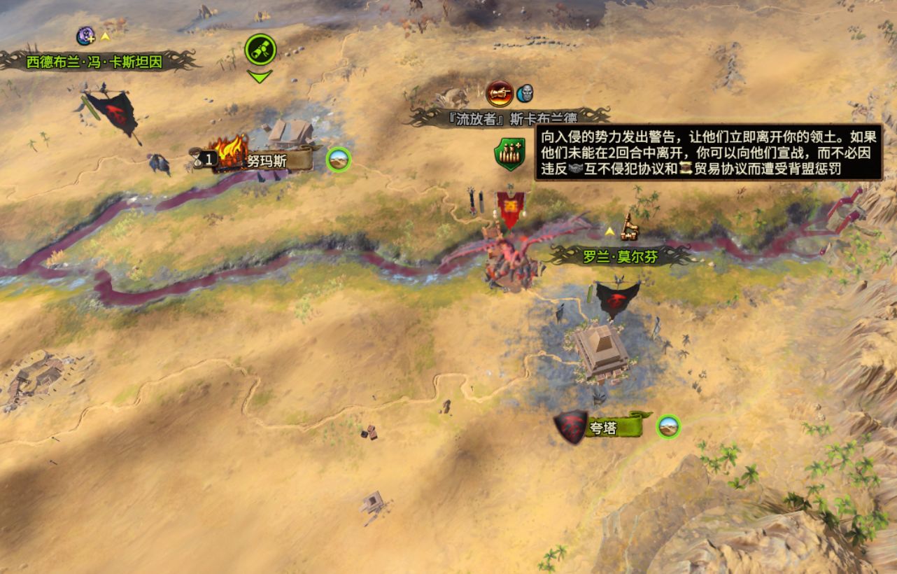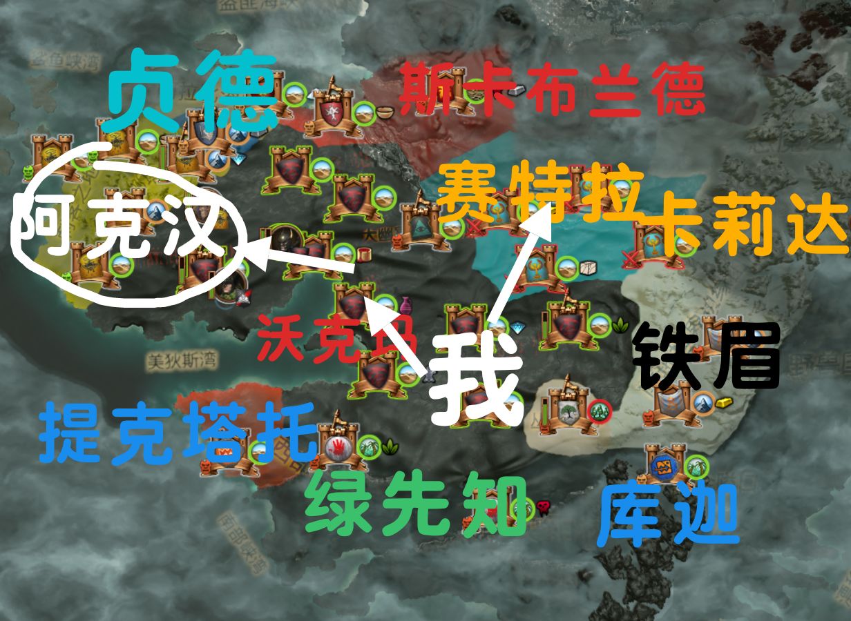 首先,阿克汉开局是跟你关系不错的,后面签不侵犯之后甚至可以同盟,所以我们往西边打,与阿克汉连接起来。