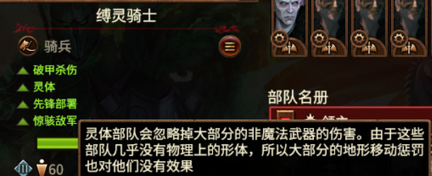 骑兵的话我选择招募灵骑,有「惊骇」技能,地鬼僵尸抗线,后排的尸车+马车冲锋,血骑士也可以都换灵骑,灵骑真的挺好用的。