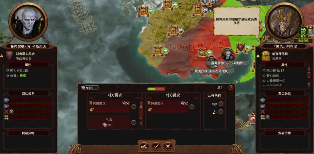 与阿克汉互有好感,所以前期直接往阿克汉那边发展,签订盟约;