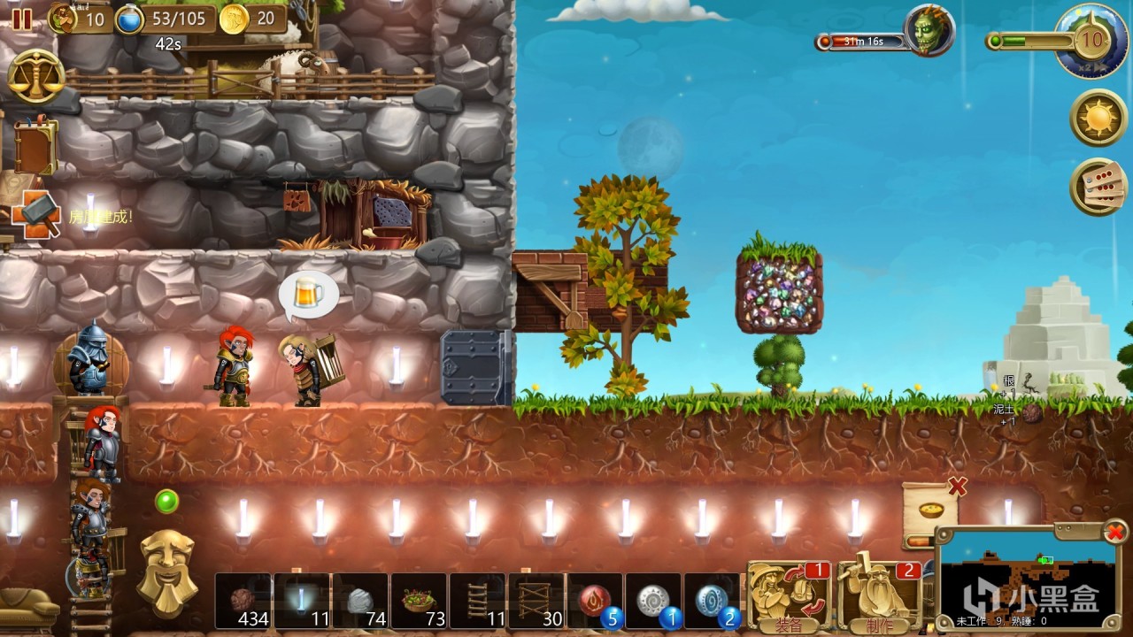 13.前期要记得把地面上的地形挖平,这不仅能让矮人走路的速度上升,也能更好的打怪和攒资源。