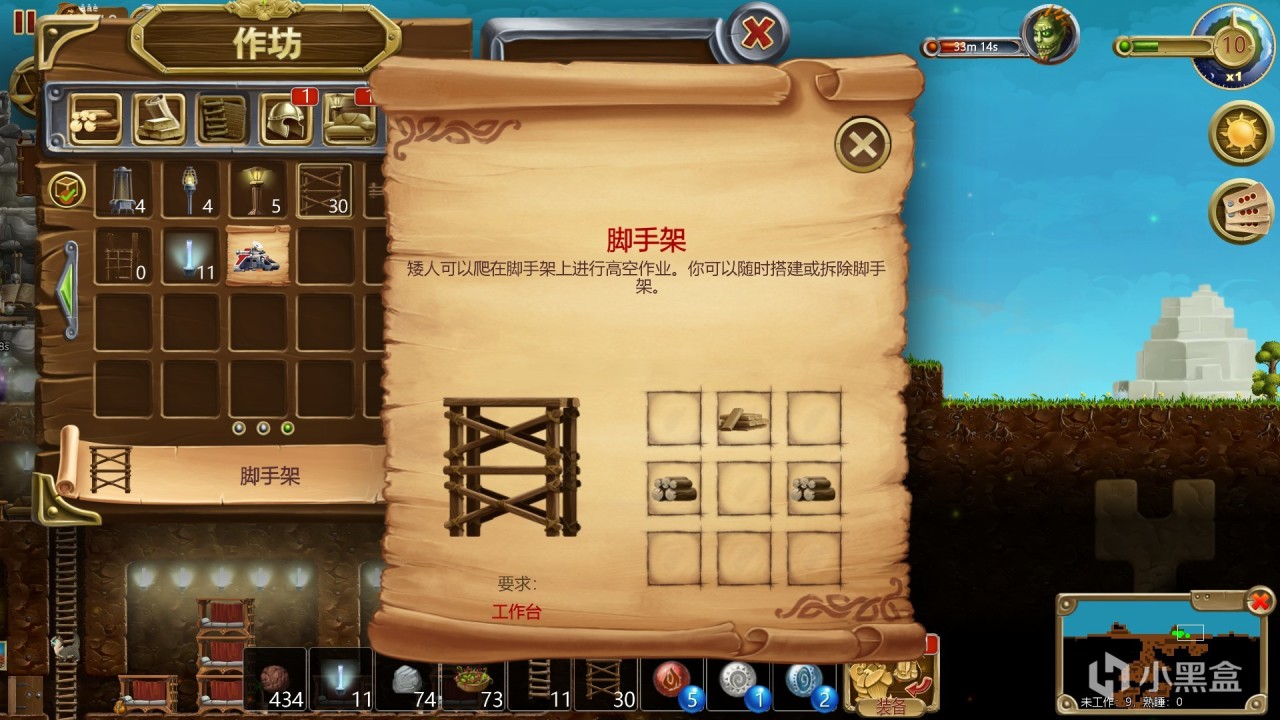 ①可以使用脚手架帮助矮人建造高层建筑。玩家可以随时随地地搭建或拆除脚手架(无需矮人的帮助)。