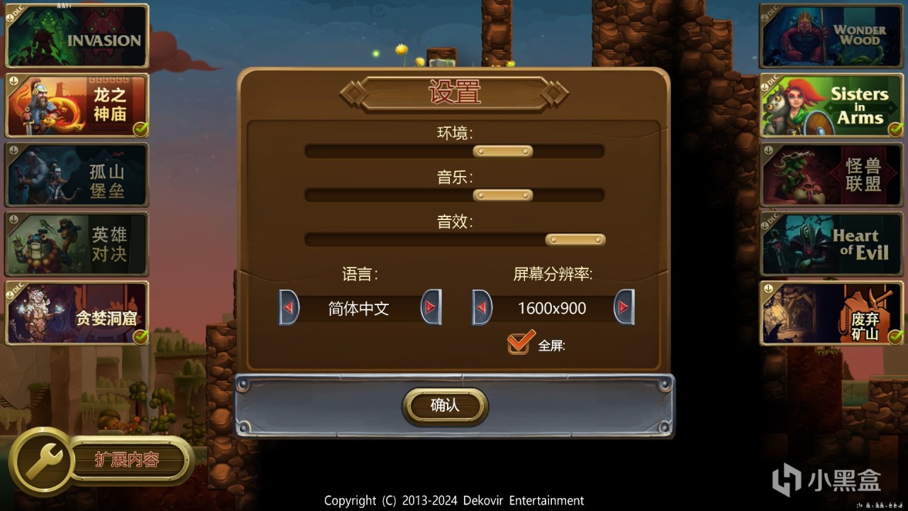 点击设置可以对游戏声音、语言、分辨率进行设置,运用Alt+Enter可以快速在全屏和窗口化模式之间切换。