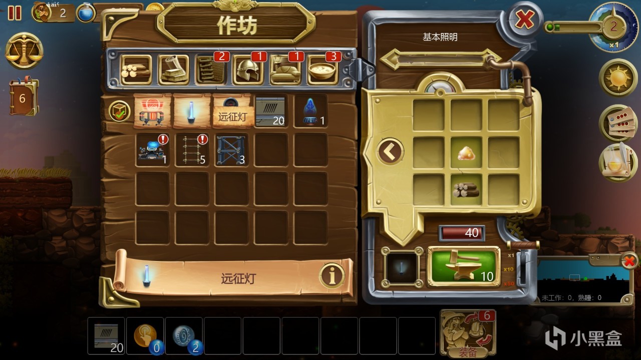 制作面板,用于制作游戏中物品,在沙盒模式中只要记得物品配方即可拖取物品制作。