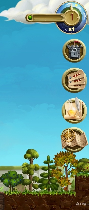 从左到右分别为,计量条(怪物袭击倒计时)、时间指针(从白天到黑夜)、指针下方的快进键(可以设置游戏进行的速度)