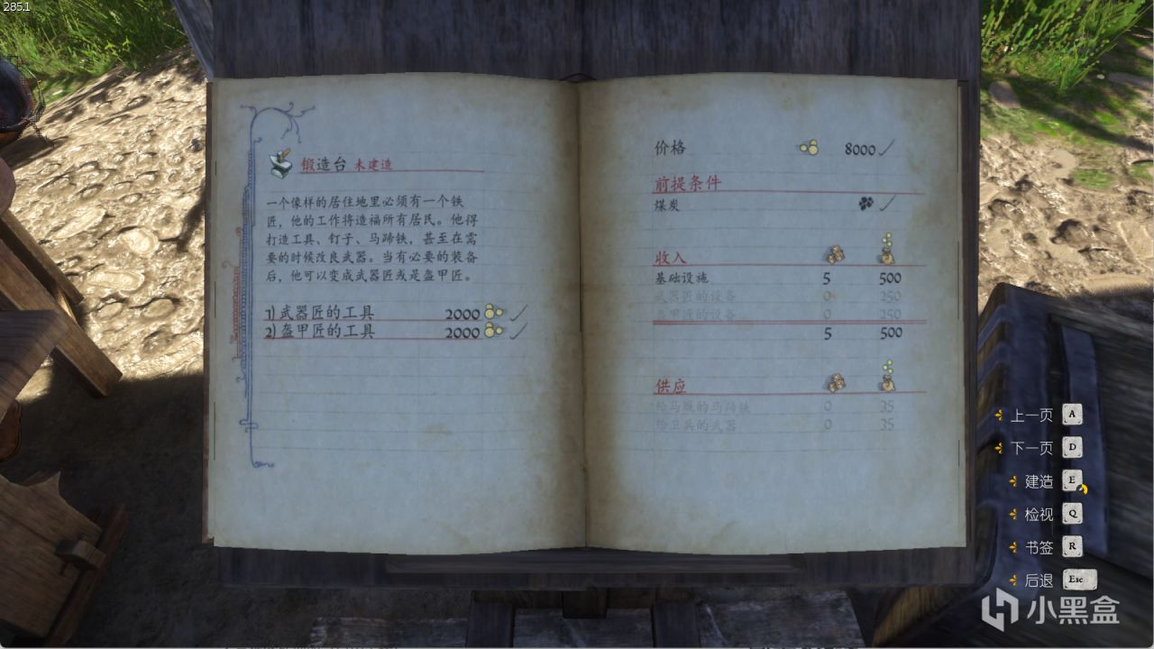我們要去購買石材、穀物、牲畜、煤炭四種資源以建造其他設施。其中石料只需要購買一次,其他資源則需要一直購買。