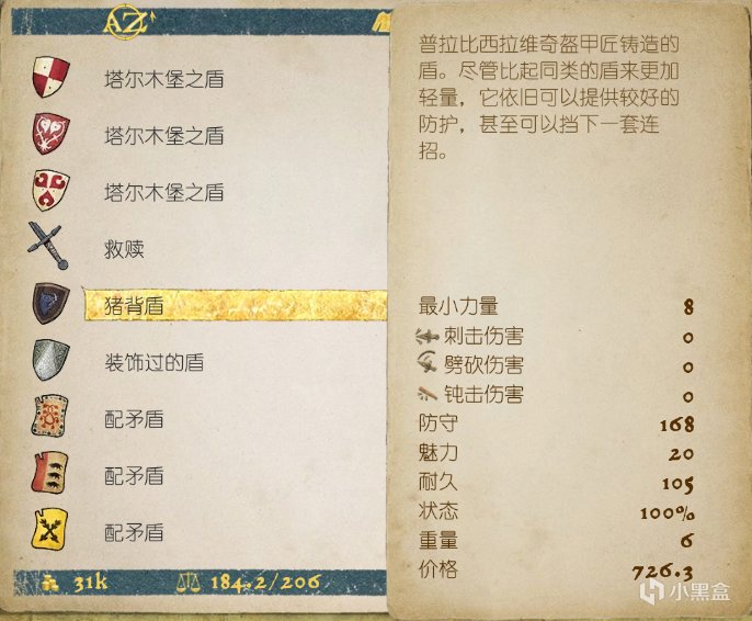 2.盔甲匠解鎖豬背盾(168的防禦比配矛盾150的防禦還高)
