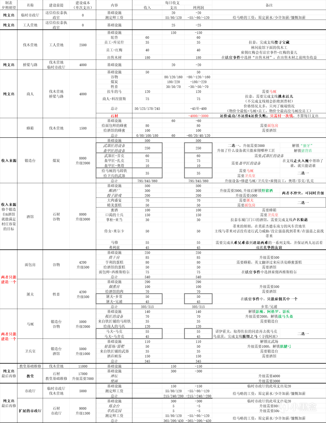 下面是我根據網絡資料和遊戲內容整理的(建築按照我個人的建造順序排序)