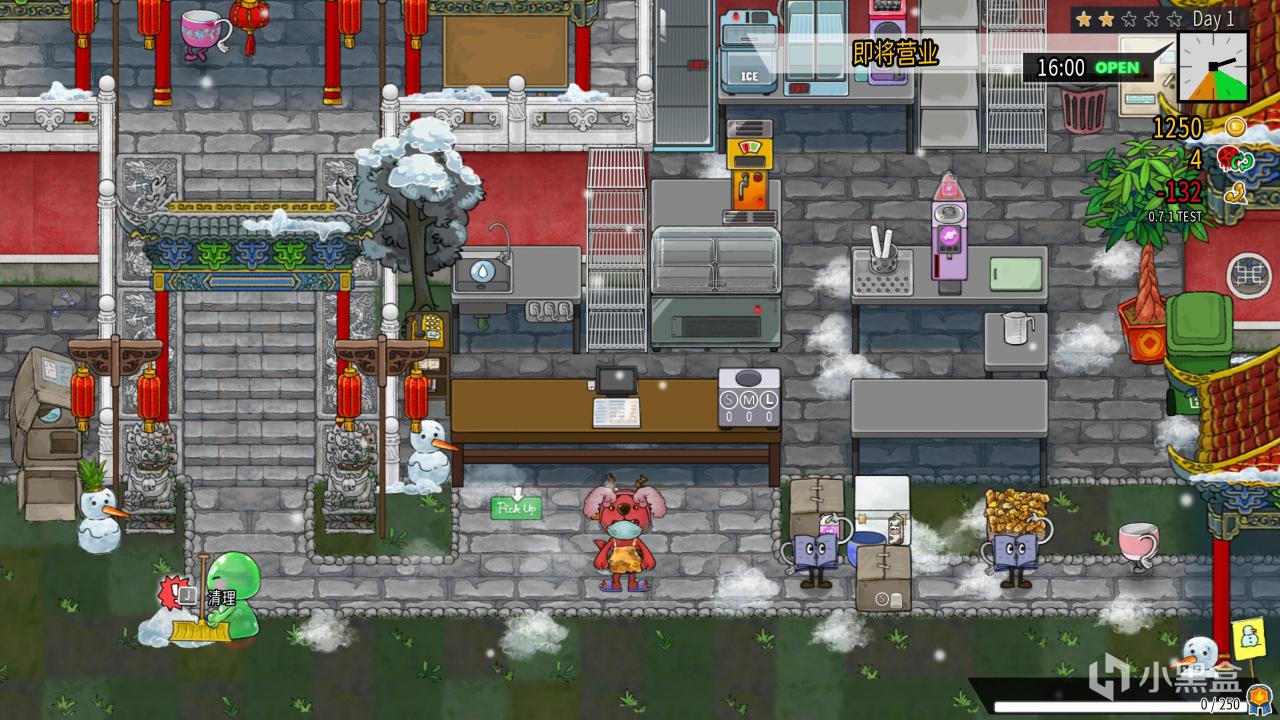 第六章的第三關會下大雪,玩家需要把店裏面以及店外面可能會影響自己和玩家的雪堆給清理掉。