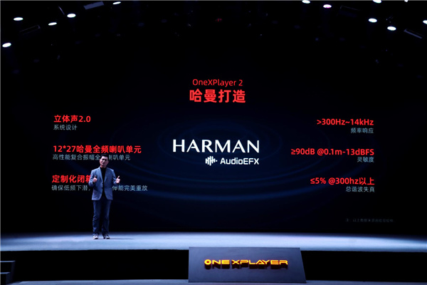 声效方面,OneXPlayer 2做到了现在PC游戏掌机界的天花板级别,采用的双扬声器由全球领先的音响设备制造商哈曼为其量身打造,经过反复调校及测试其声效通过了哈曼品牌认证。