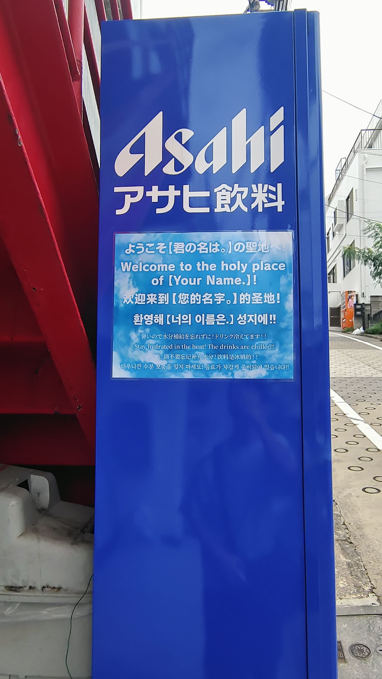 到须贺公园了,自动贩卖机上还有欢迎各国游客打卡的留言