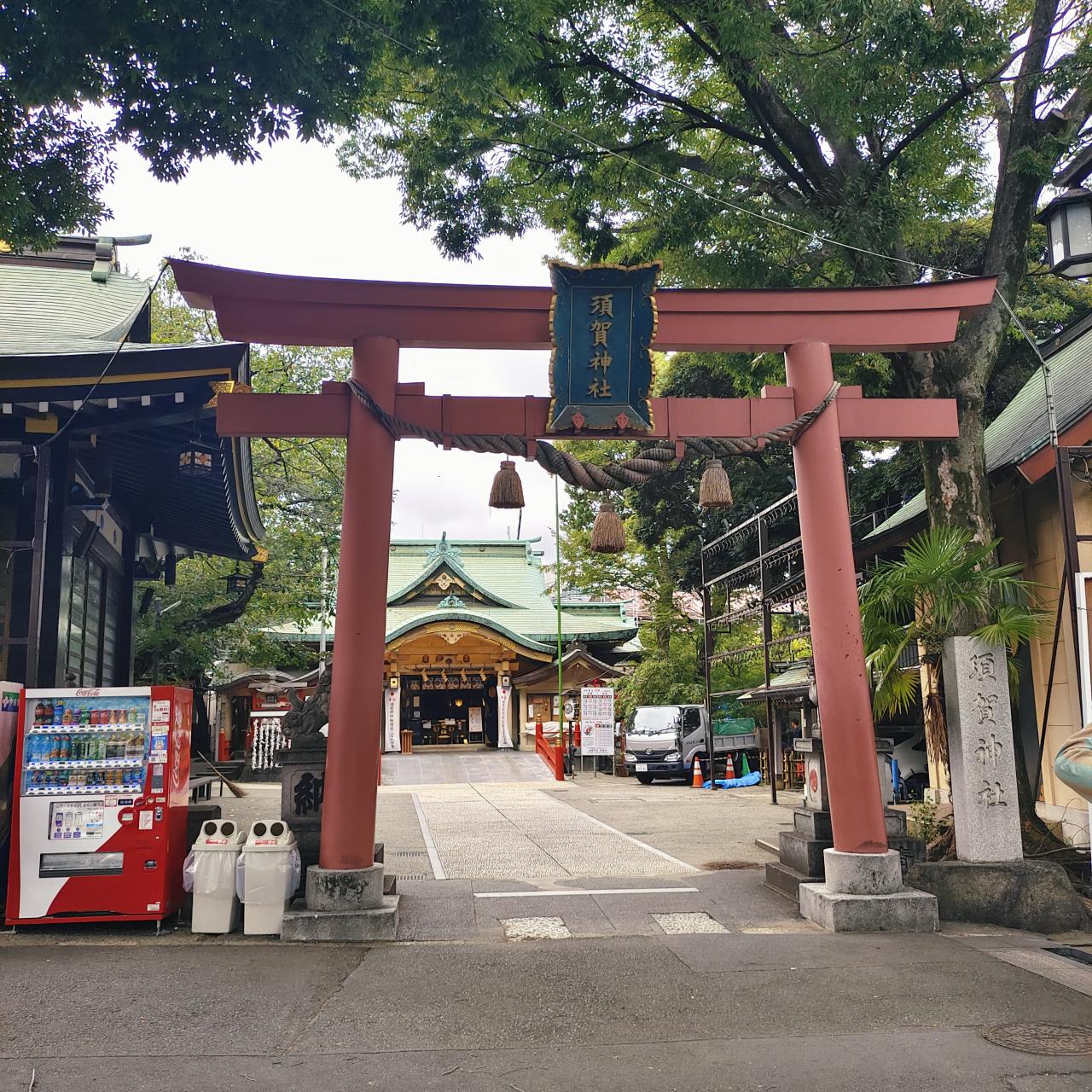 从自动贩卖机回头就是神社入口