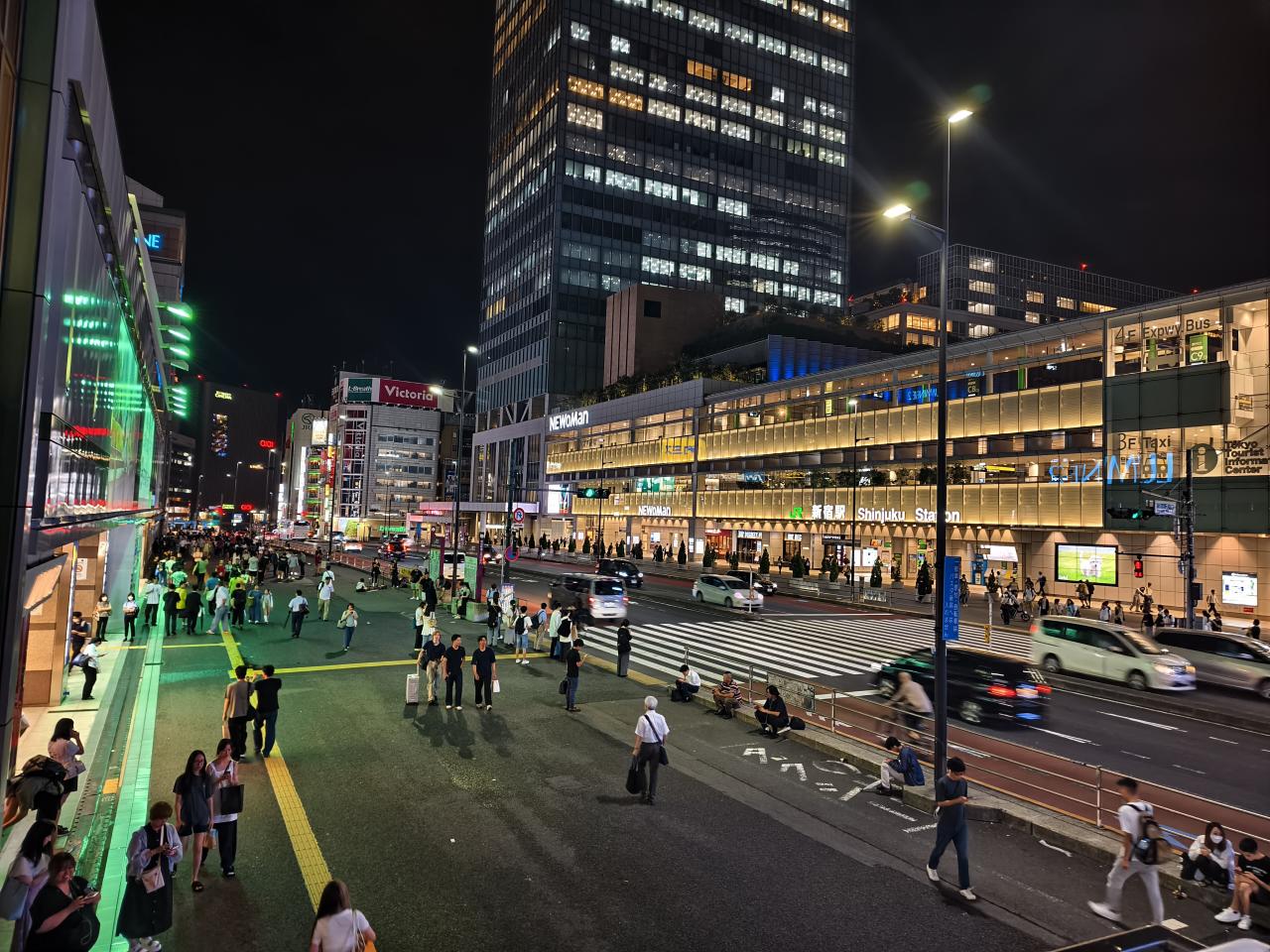 新宿站前两侧,都有特别宽的人行道,一到晚上就会有很多歌手来这边演唱,爱繆,优也,当山真铃没出道前也在这边演唱过
