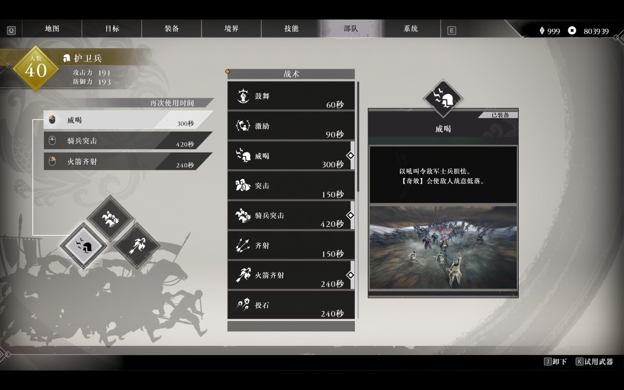 此外,护卫兵系统的设计真是锦上添花,利用小兵去打战术辅助自己战斗,合理观察战况和地形,打出战术奇效,造成大量伤害并且能让敌方武将暂时掉一层士气,事半功倍。