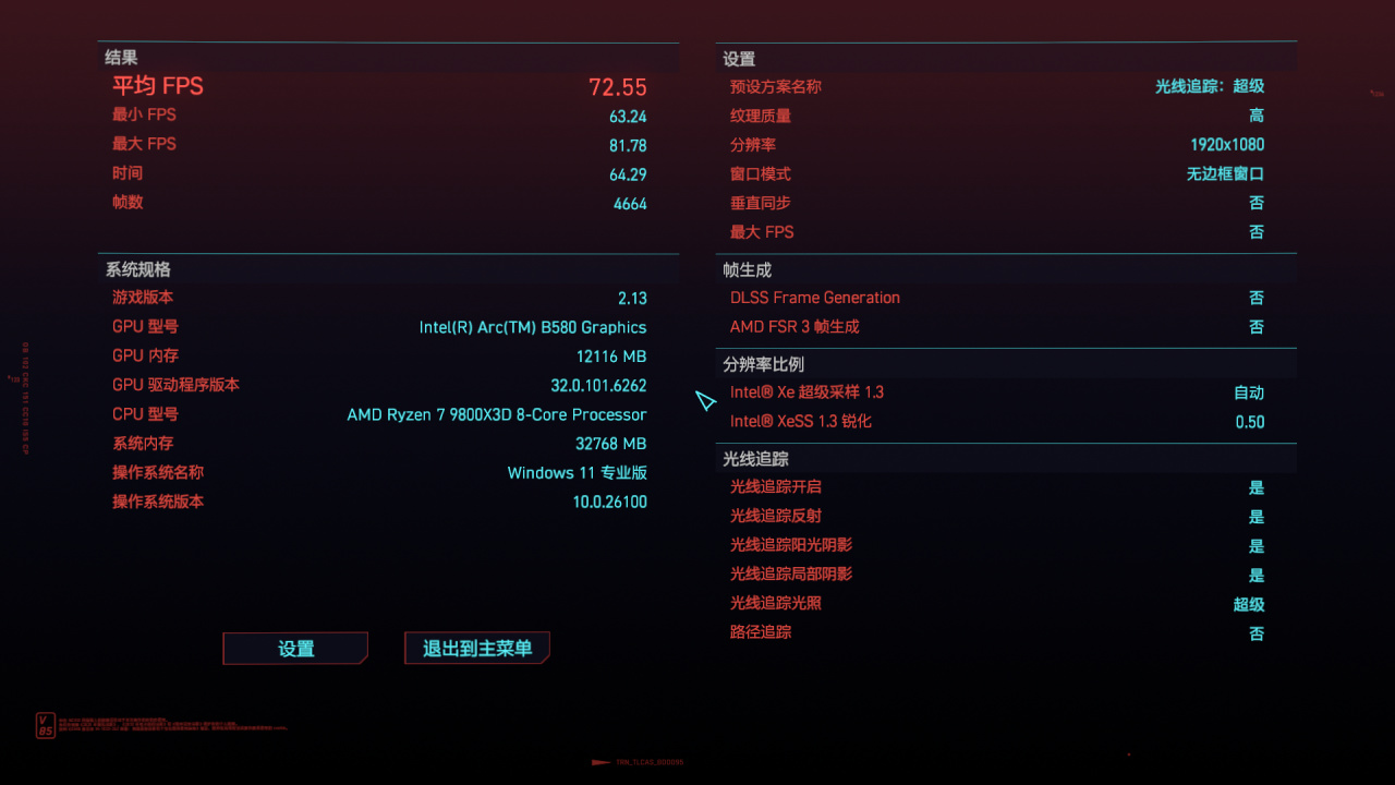 《2077》在1080P模式之下,可以輕鬆地達到72.55幀。