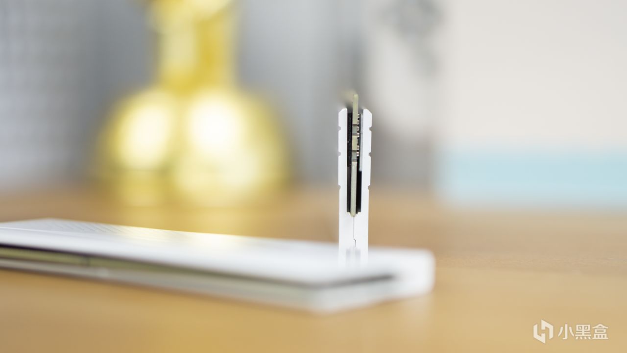 打開包裝,我們就可以看到這對內存的本體了。雖然是一對沒有RGB的素條,可星刃在顏值上卻絲毫沒有打折扣。它的漆面精細,手感極好,而且用類似戰艦甲板上的花紋突出了其電競的氣質。