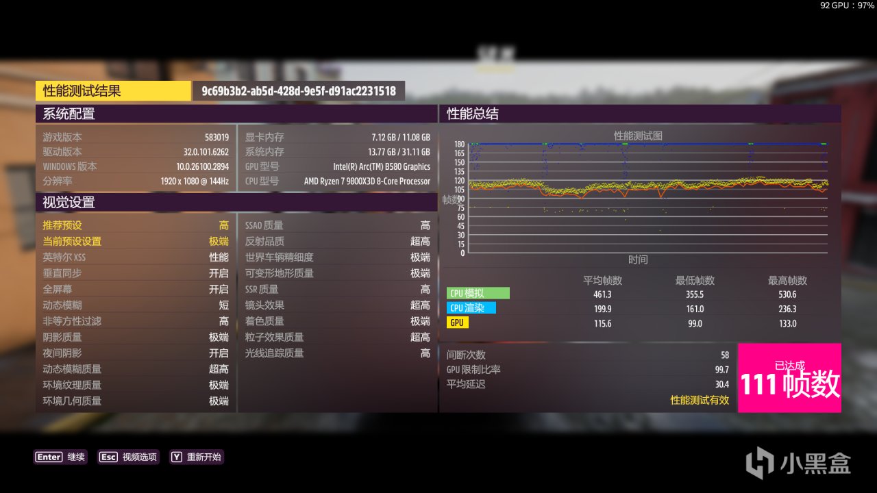 另外,我們也捎帶腳測試了一下3A遊戲,《地平線5》1080P在極端預設之下,可以輕鬆達到111幀。