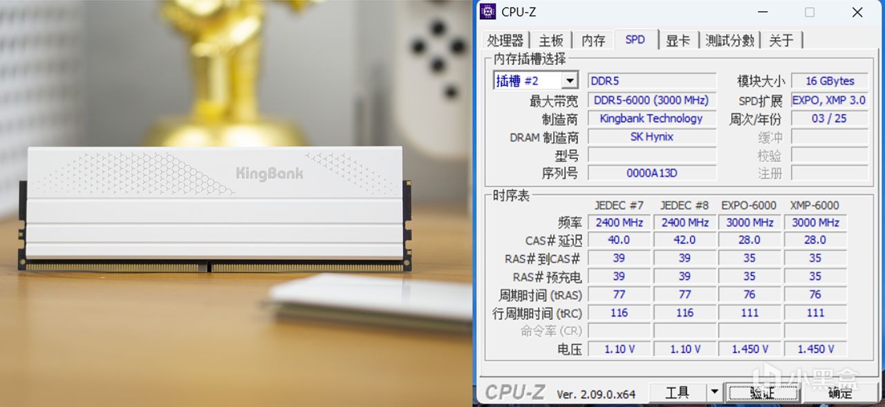 金百達星刃DDR5使用了海力士特挑的顆粒,這一點我們也能夠從CPU-Z對內存信息的讀取上看得出來。