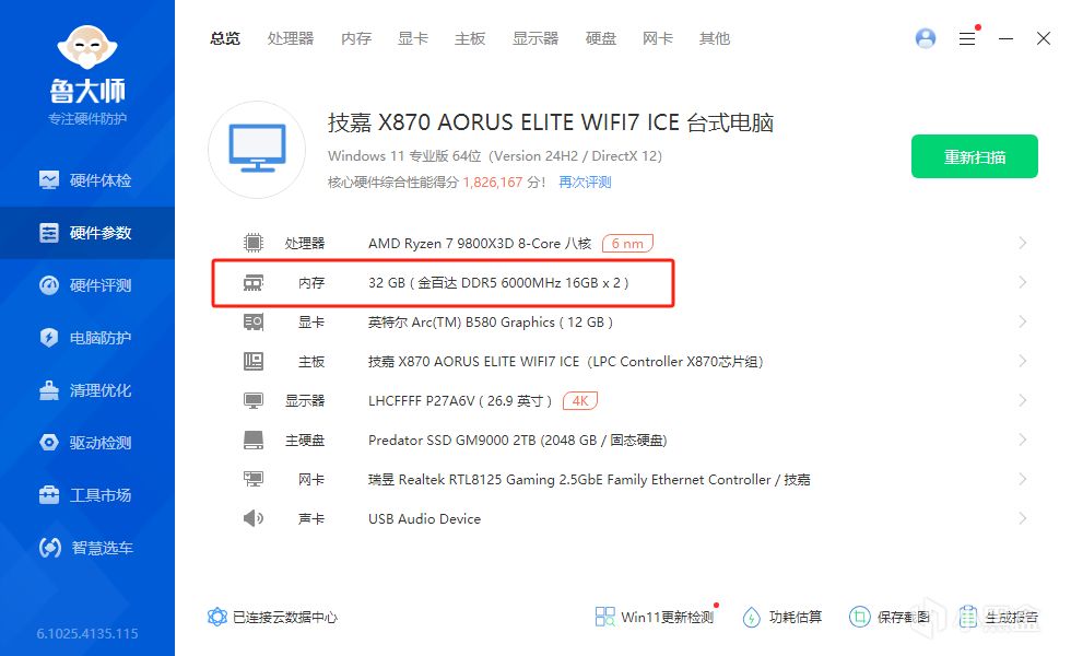 接下來,我們也對這對內存進行了測試。上面的圖片就是本次測試的硬件平臺。其中紅框部分爲本次測試的內存,金百達 星刃白DDR5 6000MHz C28 16GBx2的套條。