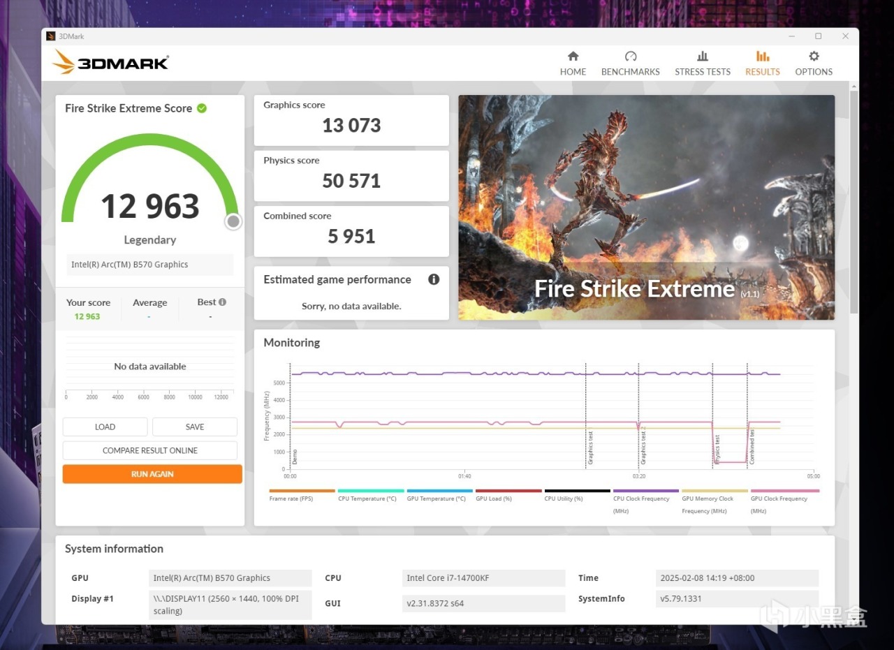 3DMARK Fire Strike Extreme 測試,總分12963分,其中顯卡得分13073。