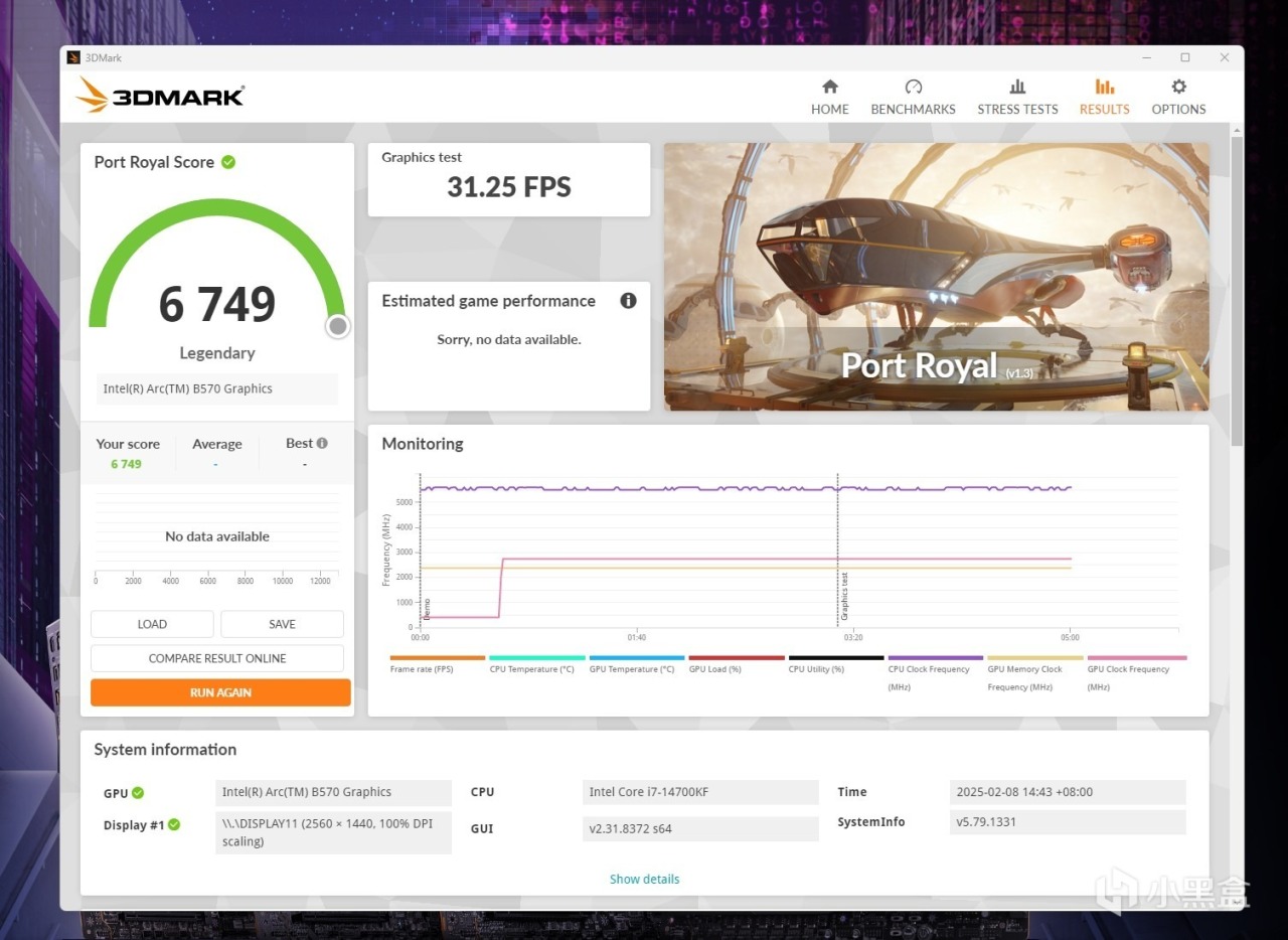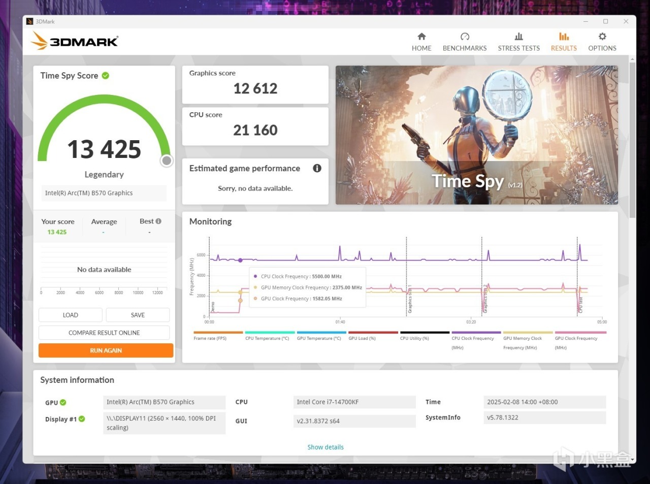 3DMARK Time Spy測試,總分13425,其中顯卡得分12612。