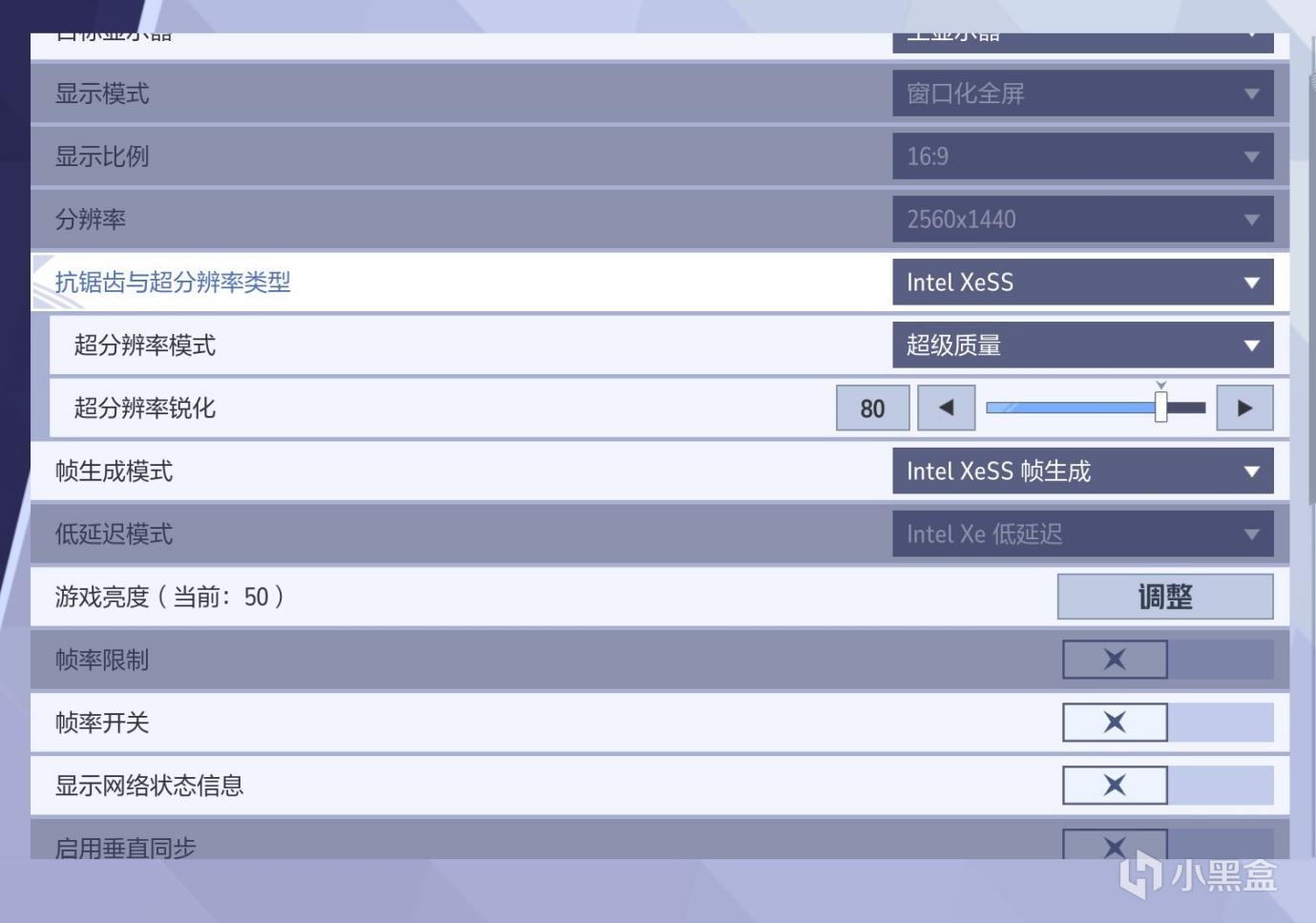 在界面裏可以看到開啓XeSS的選項,此外還有Xess幀生成,以及Xe低延遲。