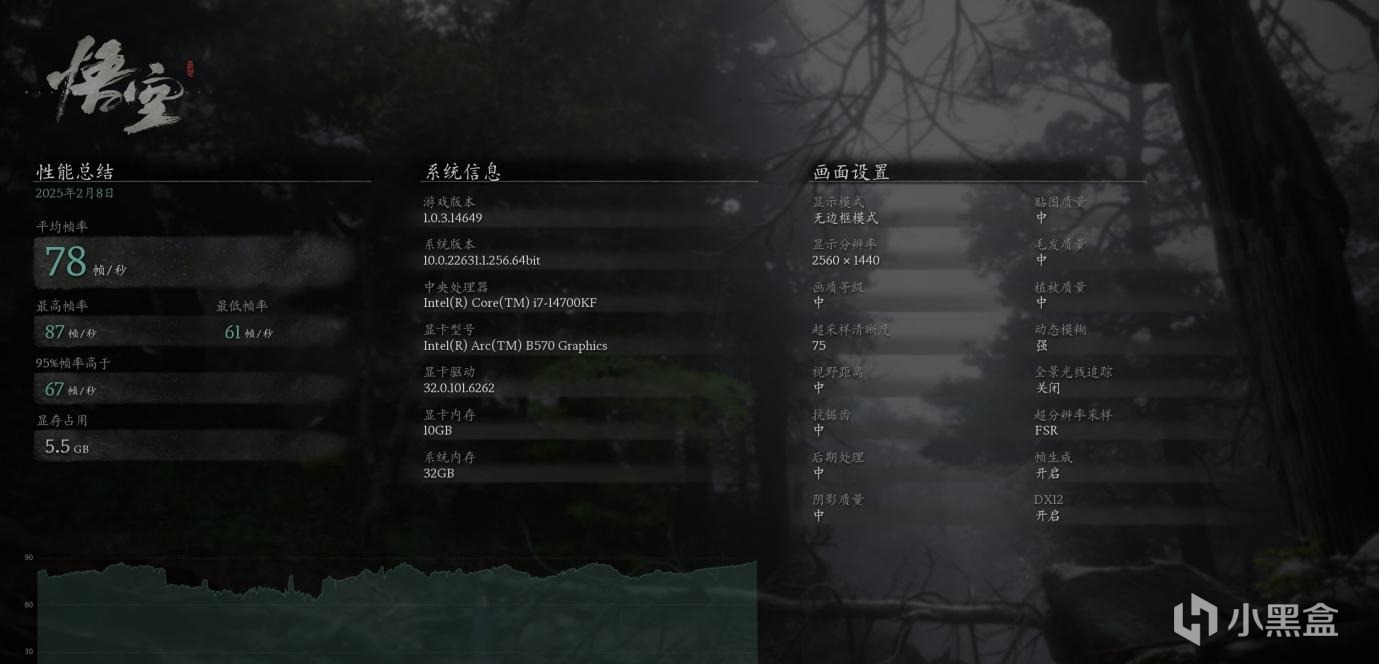 黑神話.悟空,在2K分辨率中等畫質下,開啓FSR,幀數78幀/秒。